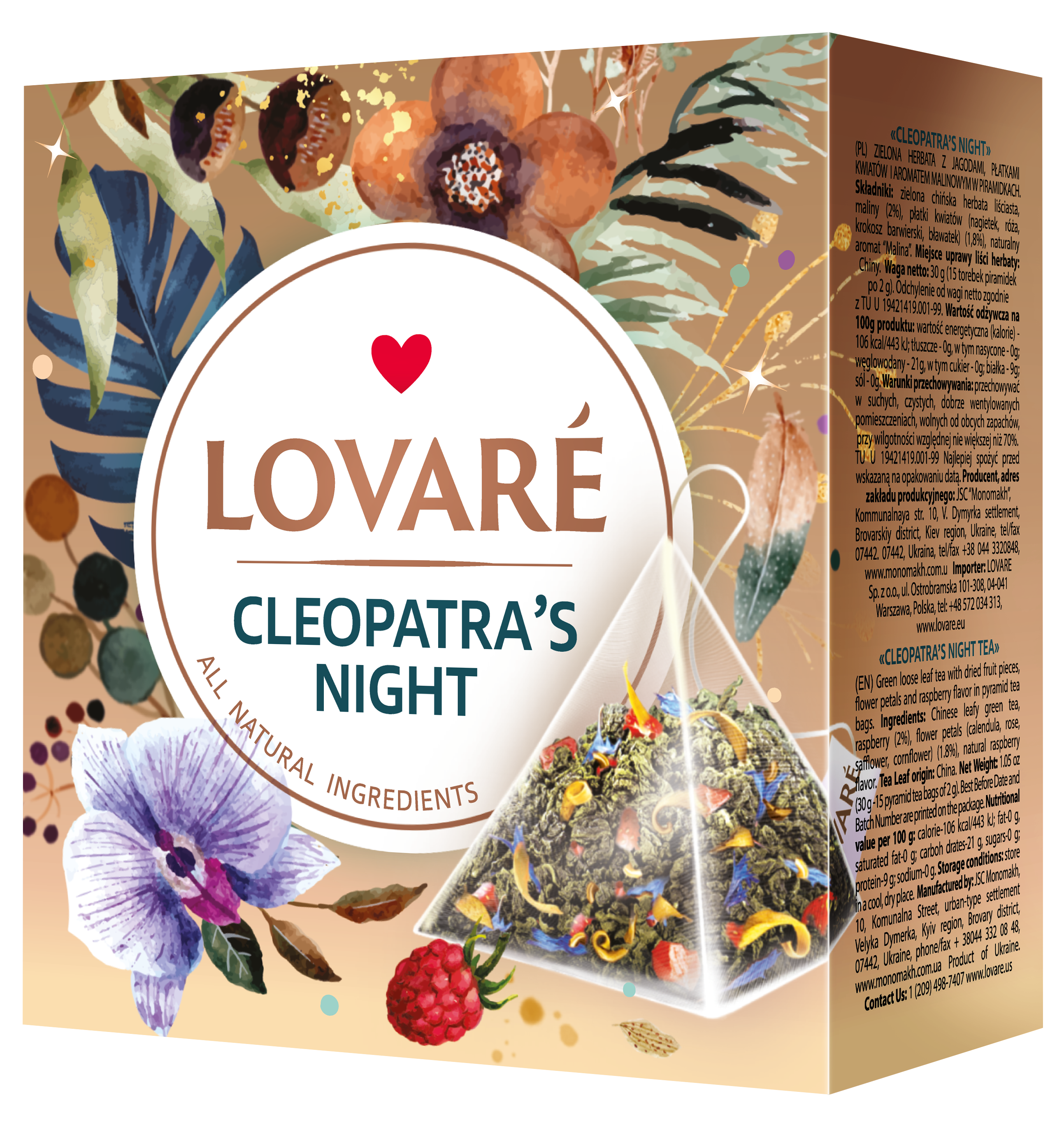 Amestec de hibiscus, fructe de pădure, fructe și petale de flori, cu aromă de fructe de pădure și vișine.