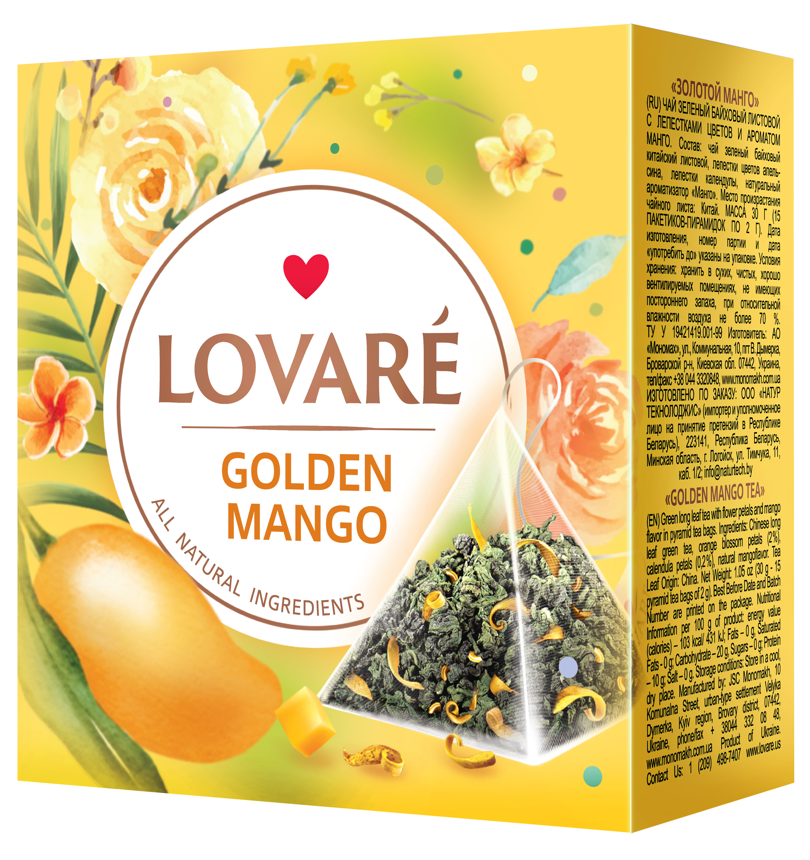 Ingrediente: Frunze de ceai negru de Ceylon, coajă de portocale (4%), petale de flori (trandafir, șofrănel și gălbenele) (1,7%), arome naturale: ”Piersici”, ”Fructul pasiunii”.